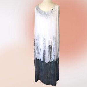 Hand Dyed Two Layer Sleeveless Dress in White and Silver Gray by Impulse California.