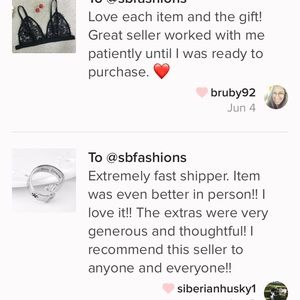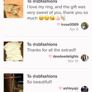 Some very sweet love notes I have received since becoming a new posher and now very excited starting my boutique…With a long ago history in retail including a high-end clothing boutique, it's wonderful to get great feedback! Despite my chronic illness with good and rough days, I strive to keep every customer happy and served well. Thank you for all who have been so sweet and understanding with me when I'm not feeling Fab and I promise to keep delivering the most excellent service I'm able!🐶🐶✔