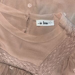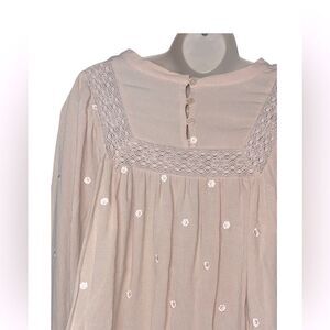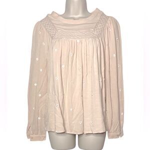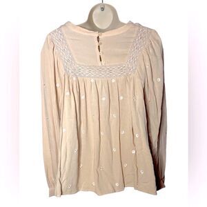In Loom Natural Beige Floral Embroidered Drop Sleeve Oversized baby doll Blouse Top