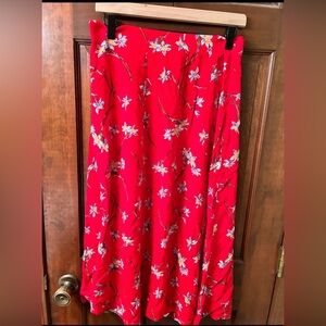 IN MODA VTG 90s Rayon Vibrant Red Floral Button Front Maxi skirt. Size M.