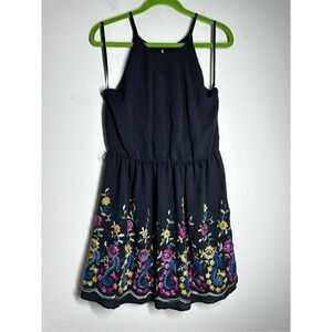 IN SAN FRANCISCO Floral Embroidered Dress Size L Black Pink See Description
