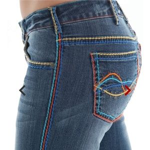 I have a couple pair of Cowgirl Tuff jeans listed, but not rainbow. Check them out if you'd like! Good luck in your search!