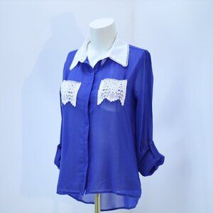 IN STYLE Blue and White Collar Blouse Vendor Size S NWT