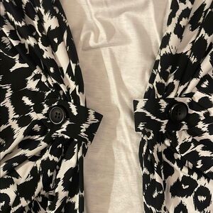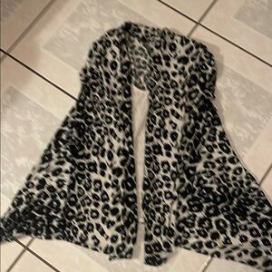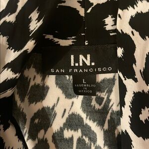 Chic black and white open front cardigan by I.N. San Francisco. Ideal for layering.#129