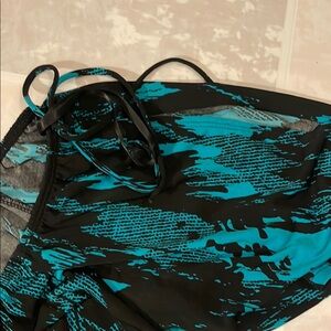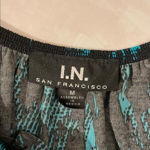 This chic blouse from I.N. San Francisco features a stylish puff sleeve design with a smocked bodice and a charming tie front. The short sleeves and elegant blue and black color palette make it a versatile addition to any wardrobe. Perfect for adding a touch of sophistication to your ensemble. A6