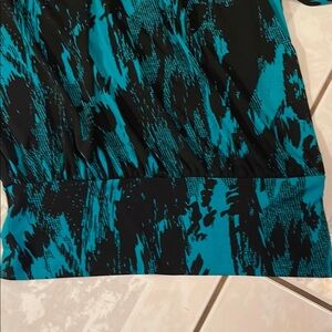 I.N. San Francisco Blue and Black Puff Sleeve Smocked Blouse