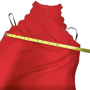 Red Mini Dress High Neck Sleeveless Scalloped Edges. Very nice pre-owned condition. Womens L, Pit to pit 16.5" across, Hips 19.5" across, Shoulder to hem 34"