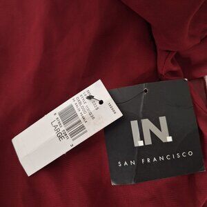 I.N. San Francisco shift dress with cold shoulder and ruffle sleeves in burgundy red, size large.