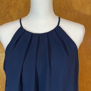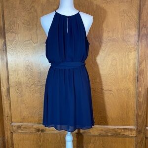 Super flattering high neck sleeveless dress with gathered elastic waist. Fit and flare style. Removed tue belt. Fully lined. Smoke free home.