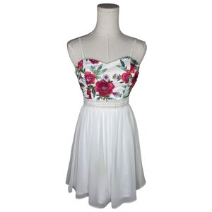 I.N. San Francisco White Floral Embroidered Fit & Flare Mini Dress Size 3