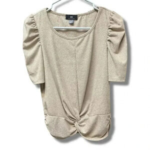 IN San Francisco Women's Beige Puff Sleeve Twist-Front Blouse Size S