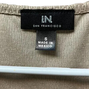 Introducing the IN San Francisco Women's Blouse, a new addition to your wardrobe that combines elegance with comfort. This blouse features a shiny appearance that catches the eye, complemented by a sophisticated twist-front design. The puff short sleeves add a touch of femininity, while the crew neck keeps it classic and versatile. Crafted from a knit fabric, this blouse offers a regular fit that flatters any body type. It's perfect for occasions that call for a bit more polish than your everyday wear. The blouse is machine washable for easy care and comes new with tags, ensuring it's ready to wear as soon as it arrives.