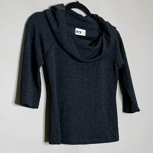 I.N. Studio Black Petite Cowl Neck Top Three Quarter Sleeves Size P/S