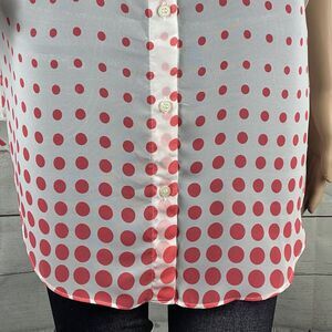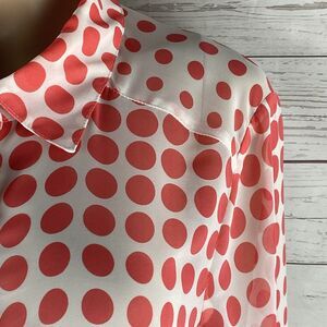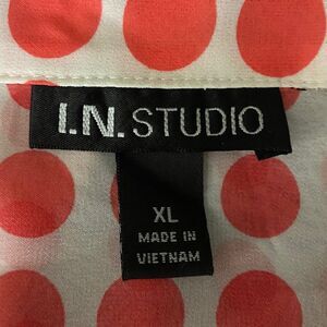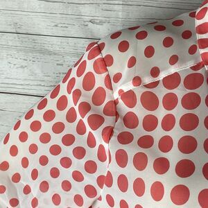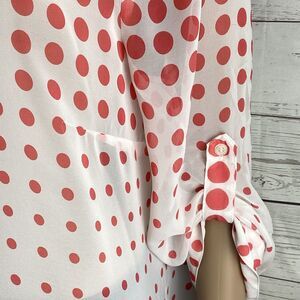I.N. Studio Blouse XL Sheer White Pink Polka Dot Roll Tab Sleeves