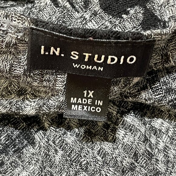 I.N. Studio Cardigan Sweater Open Front Floral Grey Size 1X Ribbed Longline