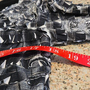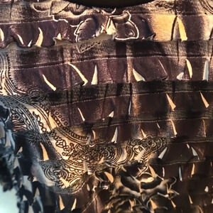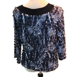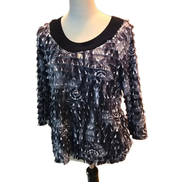 I.N. Studio Layered Ruffled Top Black & Gray 3/4 Sleeve Wide Band Boat Neck Women size L