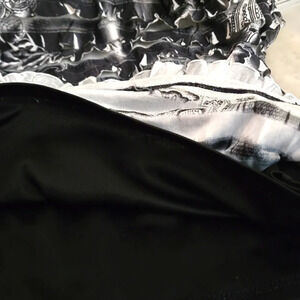 The layered ruffle design adds a playful and elegant touch, while the black lining under the shell enhances its overall look and comfort.