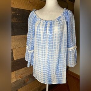 IN Studio Sheer Tie Dye Blue and White Women's Top Size XL New!