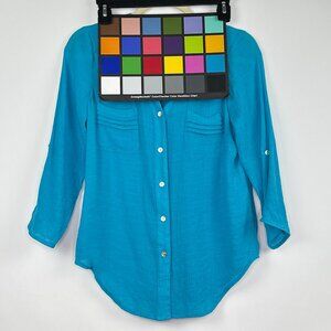 I.N. Studio | Teal Roll-Tab Sleeve Blouse Top | Pocket Detail | Size PS