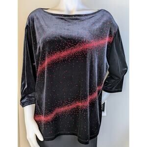 I.N. Studio Velvet Top 3X Black Red Sequined Stretch Holiday Dressy Party NEW