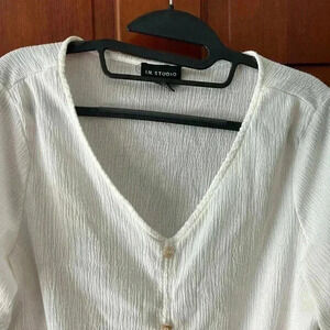 I.N. Studio White Button-Down Blouse - Boho Tie-Front Top - Size L/ XL