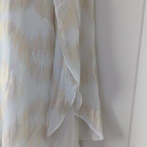 I.N. Studio Three quarter sheer sleeved blouse. While and gold.