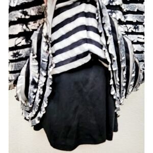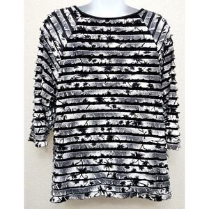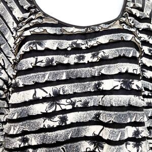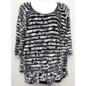 I.N. Studio Woman Black White Floral Pleats Ruffle Top 2X Plus Lightweight Lined