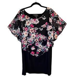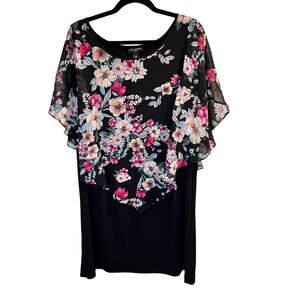 I.N. Studio Women Black Floral Drape Overlay Sleeveless Scarf Sheath Dress Sz 1X