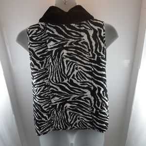 IN Studio Women Zebra Black & White Print Zipper Front Puffer Vest with Black Removable Faux Fur Collar by button. In good pre-owned condition. Plus Size 1X. 100% Polyester.