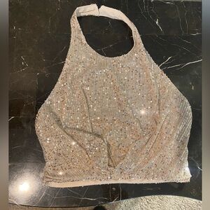 IN THE MOOD FOR LOVE Peres Sequin Halter Neck Front Twist Top