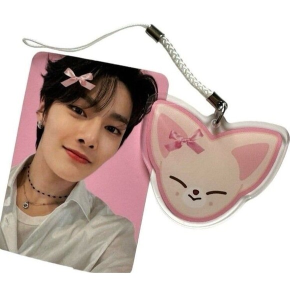 This is an adorable acrylic photo designed by me! It is attached to a high quality phone strap. The max overall size of the photo is aprox 2". You can hang these from your phone, key ring as a keychain, and even your light stick!