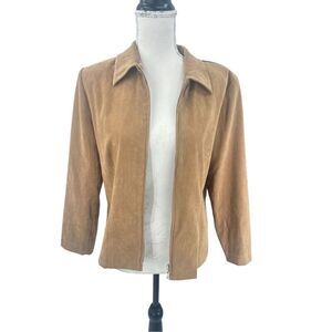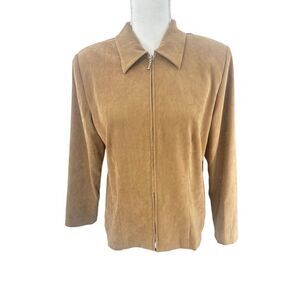 I.N studio vintage petite tan blazer size  petite large full zip  fully lined blazer with shoulder pads