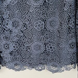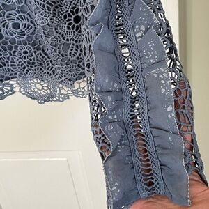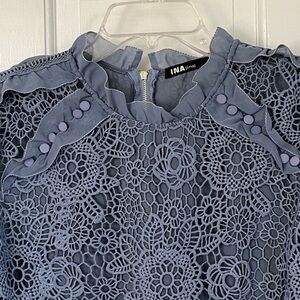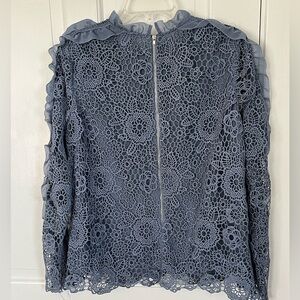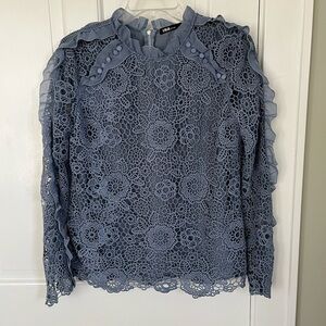 INA Lace Crochet Overlay Ruffle Long Sleeve High Neck Blouse Coquette Size Large