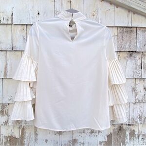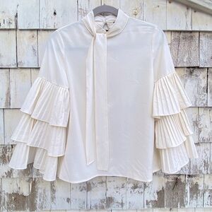 INA Ruffles Bell Pleated Sleeves Bow Tie Neckline Blouse