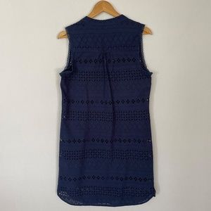 INA Sleeveless Shift Pull Over Shirt Dress Navy Blue Eyelet Lined Size Medium