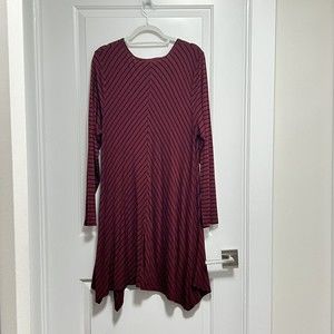 INAE Collection Lagenlook Burgundy Red & Black Striped Midi Dress XL
