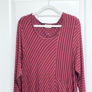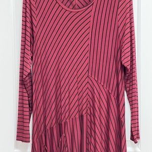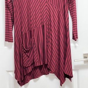 INAE Collection Lagenlook Burgundy Red & Black Striped Midi Dress XL.