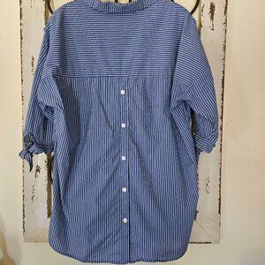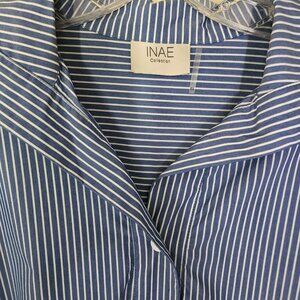 INAE Collection Women`s Striped Button down Short Sleeve Shirt Top