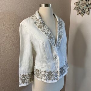 International Concepts 100% Linen Embroidered Blazer Size PS, Good Condition No Flaws or Wear