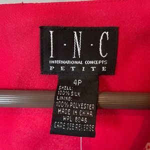 INC International Concepts 100% Silk Floral Ruffled Sleeveless Fully Lined Dress - Poppy - 4P NWT. Excellent condition, never worn. Original tags with extra button for the back. It measures 37" from top to bottom. Please view all pictures and zoom for details. There is no opening on the side to allow for extra room as you put on the dress, it slips overhead with a small button hook in the back. I absolutely love this dress and it has been in my closet for years, I just unfortunately can't fit into it and it's time to let it go. It would be perfect for a summer wedding, party or graduation event.