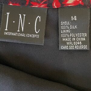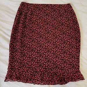 I.N.C 100% Silk Red Tiny Floral Print Above the Knee Frill Y2K Skirt, size 14