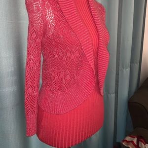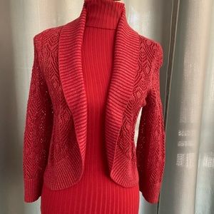 Inc turtleneck and cardigan set beautiful color the first photo has the accurate color. Quite stunning on.