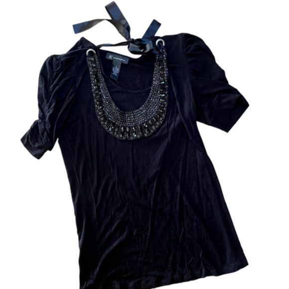 Womans INC blouse with removable ribbon aplicay. YOU wont be disappointed. pic don"t do this justice! Very sexy shirt!! Womans size M # 1017