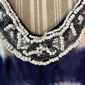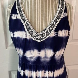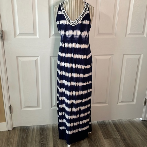 International concepts maxi dress. Size large. Beautiful bead detail around neck. Excellent condition. No rips, stains or tears. Blue and white tie-dye pattern.
