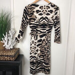 INC Animal Print Leopard Tiger Zebra Safari Stretch Knit Wrap Dress Sz XS