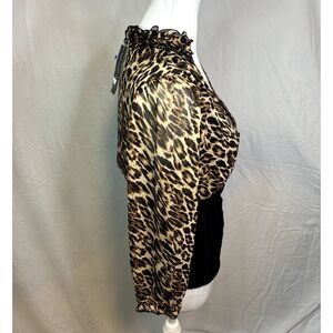 INC Animal Print Satin Ruffled Jacquard Blouse Spandex Long Sleeve Top Women NWT