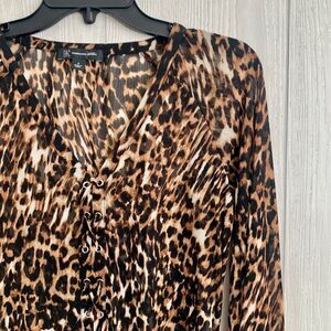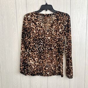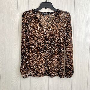 I.N.C Animal Print Sheer V-Neck Long Sleeve Top Size S