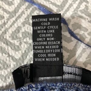 Shades of blues, asymmetrical cream lace hem, shirt sleeves,Colors may vary due to lighting, EUC,
