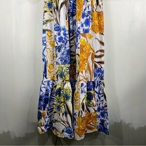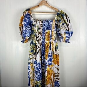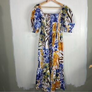 INC BOHO Phoebe Patch Printed Smocked Tiered Puff Sleeve Flowy Maxi Dress Medium