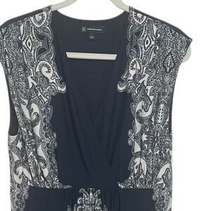 INC Bandana Print Maxi Dress Womens Large Navy Blue White Jersey Wrap V-Neck